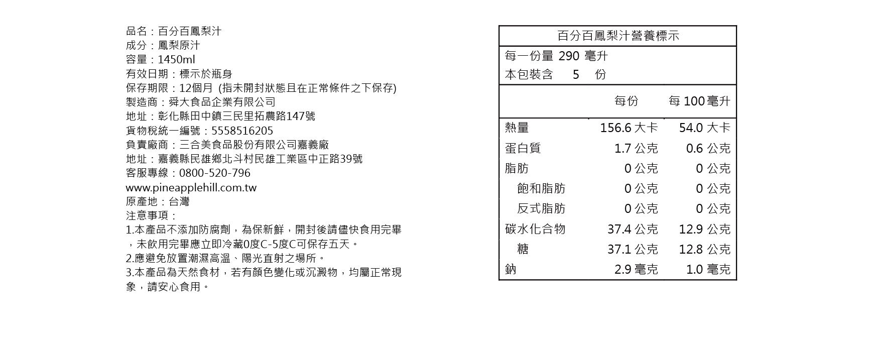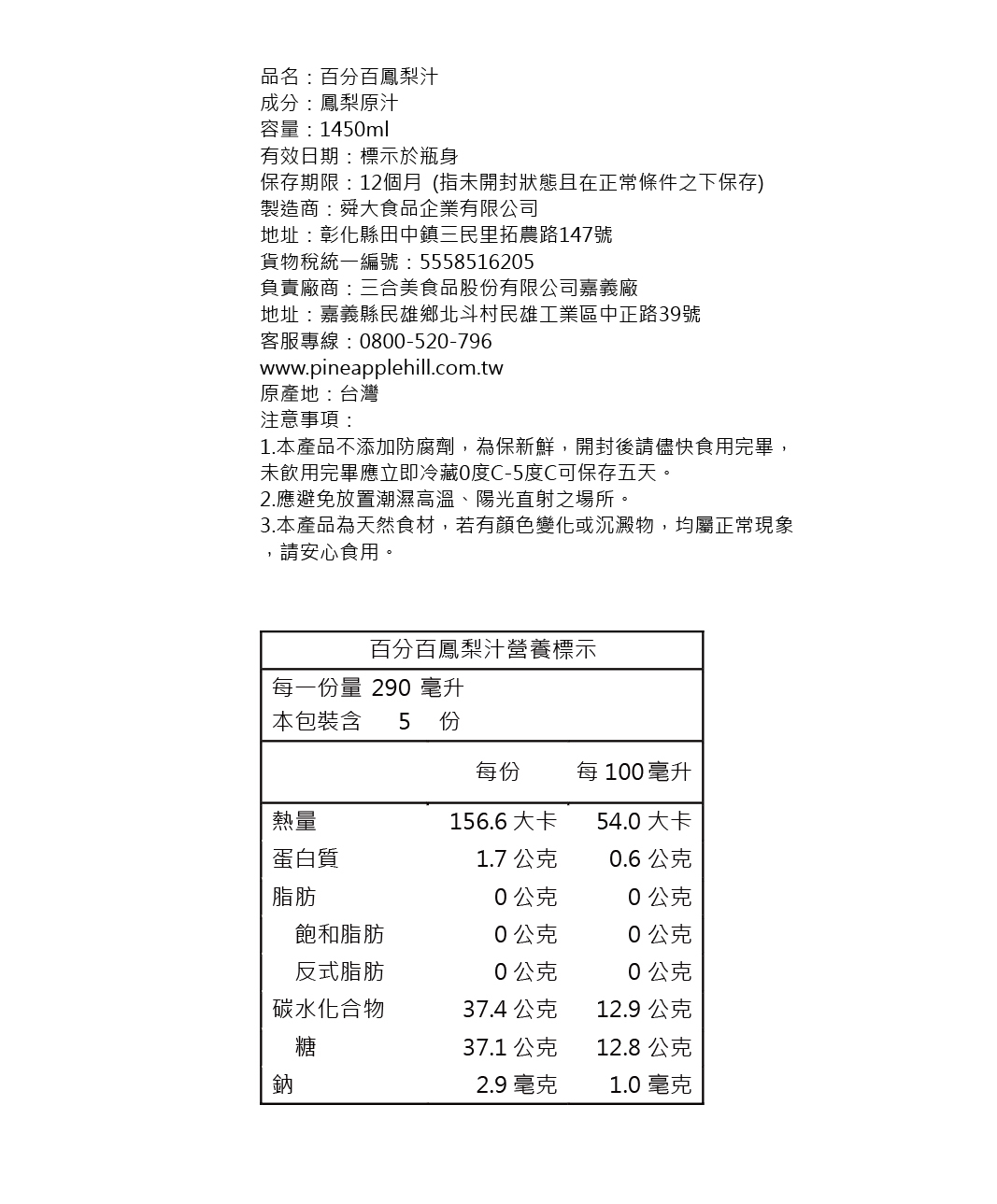 A:因為鳳梨汁是純天然果汁,無添加防腐劑,建議開封後冰入冰箱,並於一週內飲用完畢,以維持絕佳風味。