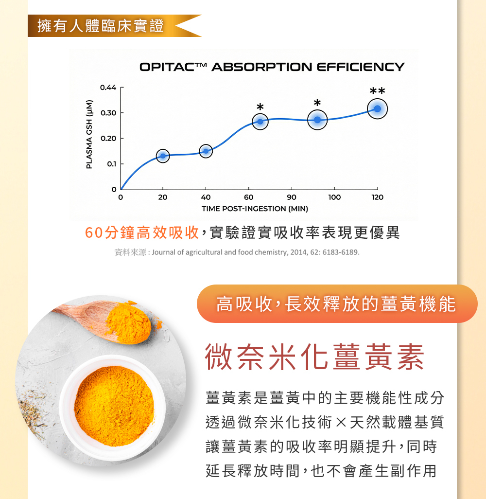 成分:薑黃萃取物(薑黃萃取物(含薑黃素)、 聚山梨醇酐脂肪酸酯八十、羥丙基甲基纖維素、 二氧化矽、海藻酸鈉)、洛神花萃取物(洛神花萃取物、麥芽糊精)、穀胱甘肽(圓酵母來源)、丹參萃取物(丹參萃取物、麥芽糊精)、鳳梨萃取物(鳳梨萃取物、麥芽糊精)、赤芝子實體(赤芝子實體(Ganoderma lucidum(Leyss. ex Fr.) Karst.,固態培養)、麥芽糊精)、硬脂酸鎂