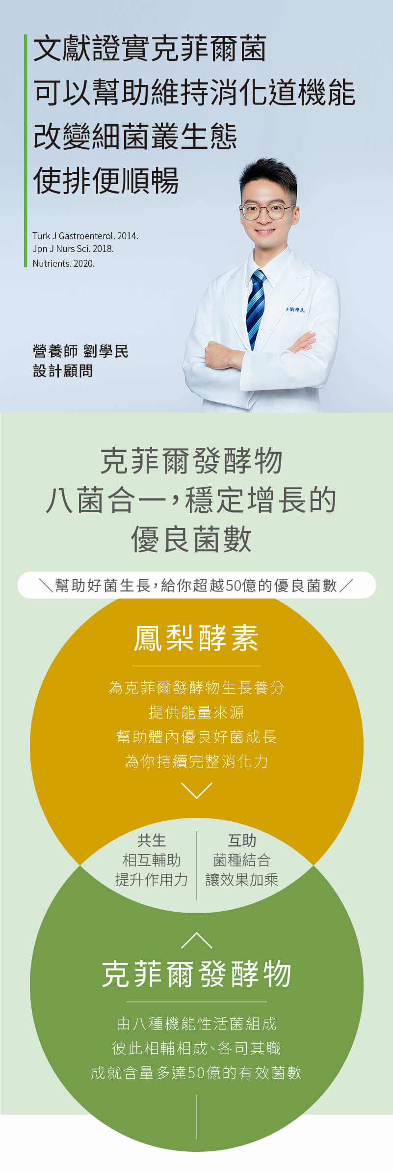 克菲爾發酵物(含乳酸菌(Lactobacillus acidophilus、Bifidobacterium longum、