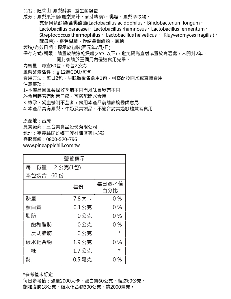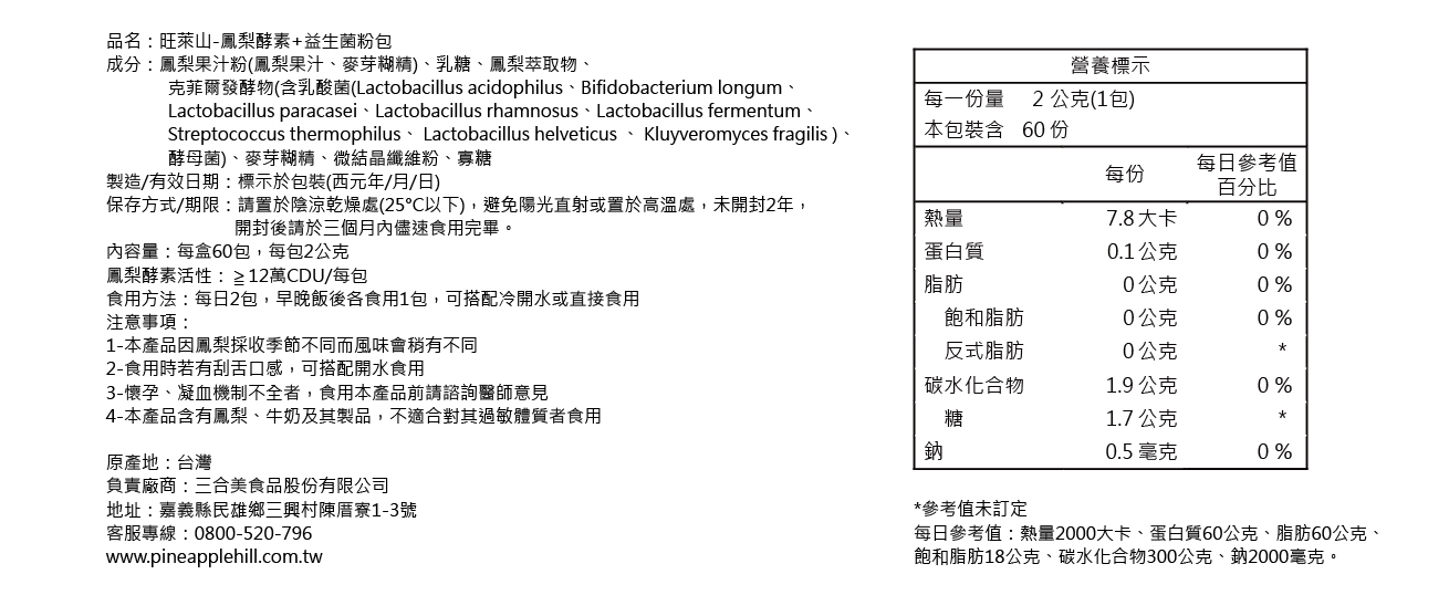 品名:旺萊山-鳳梨酵素+益生菌粉包