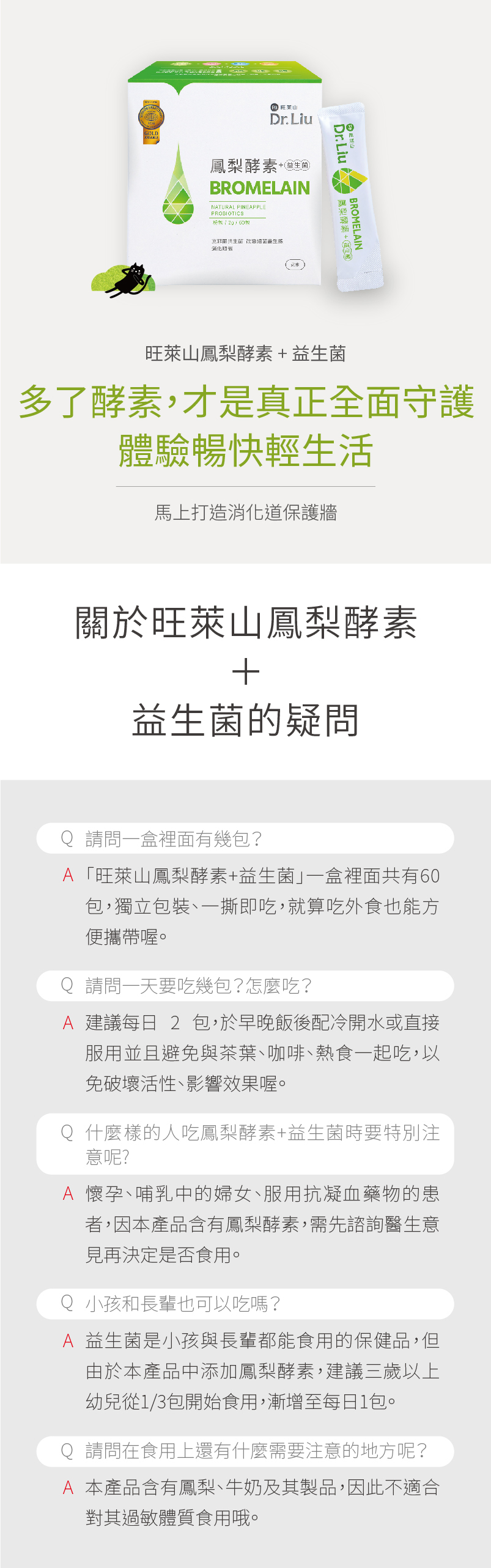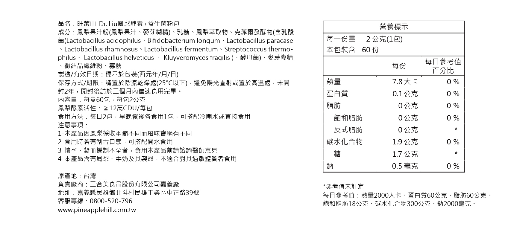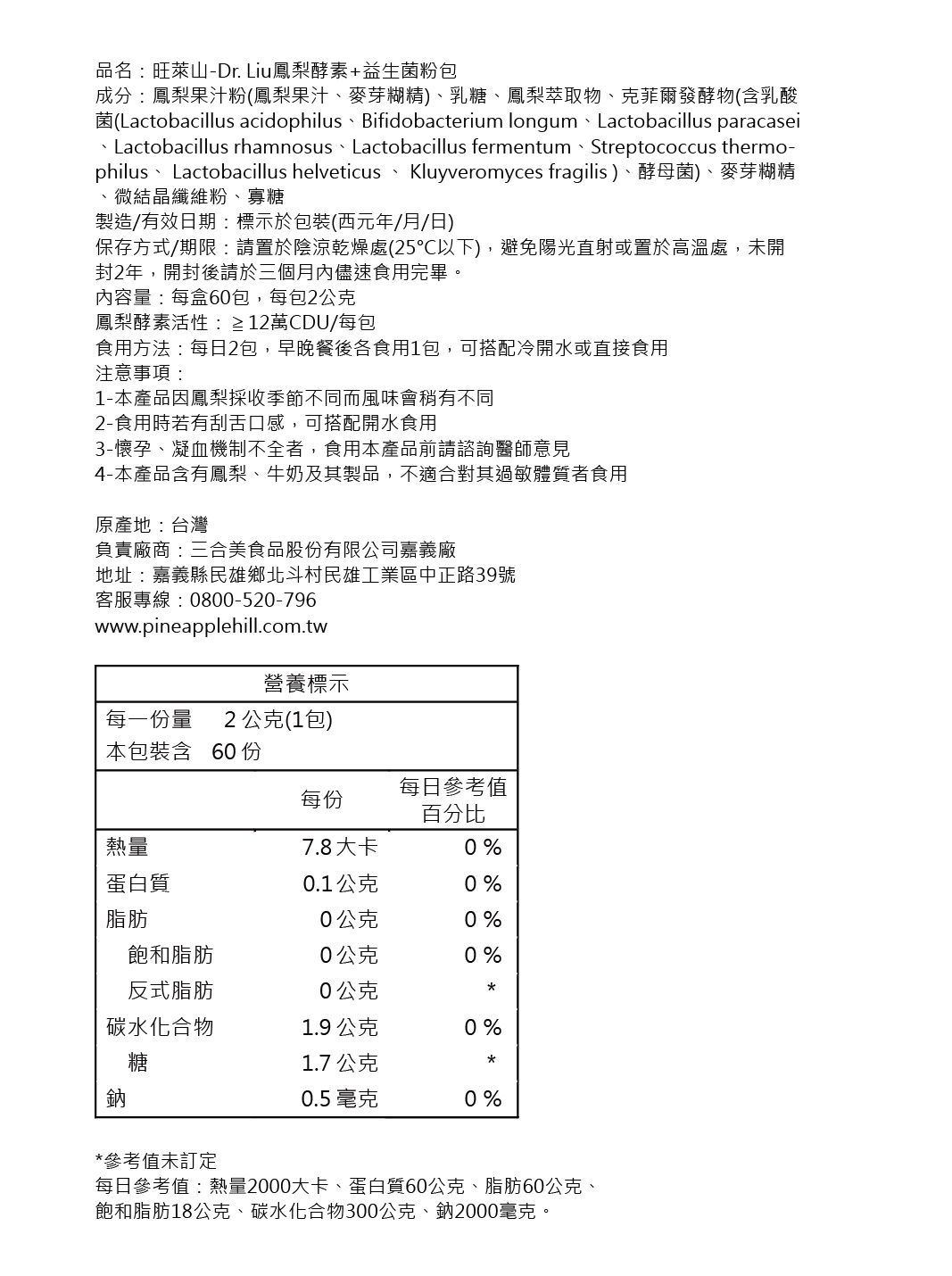 品名:旺萊山-Dr. Liu鳳梨酵素+益生菌粉包