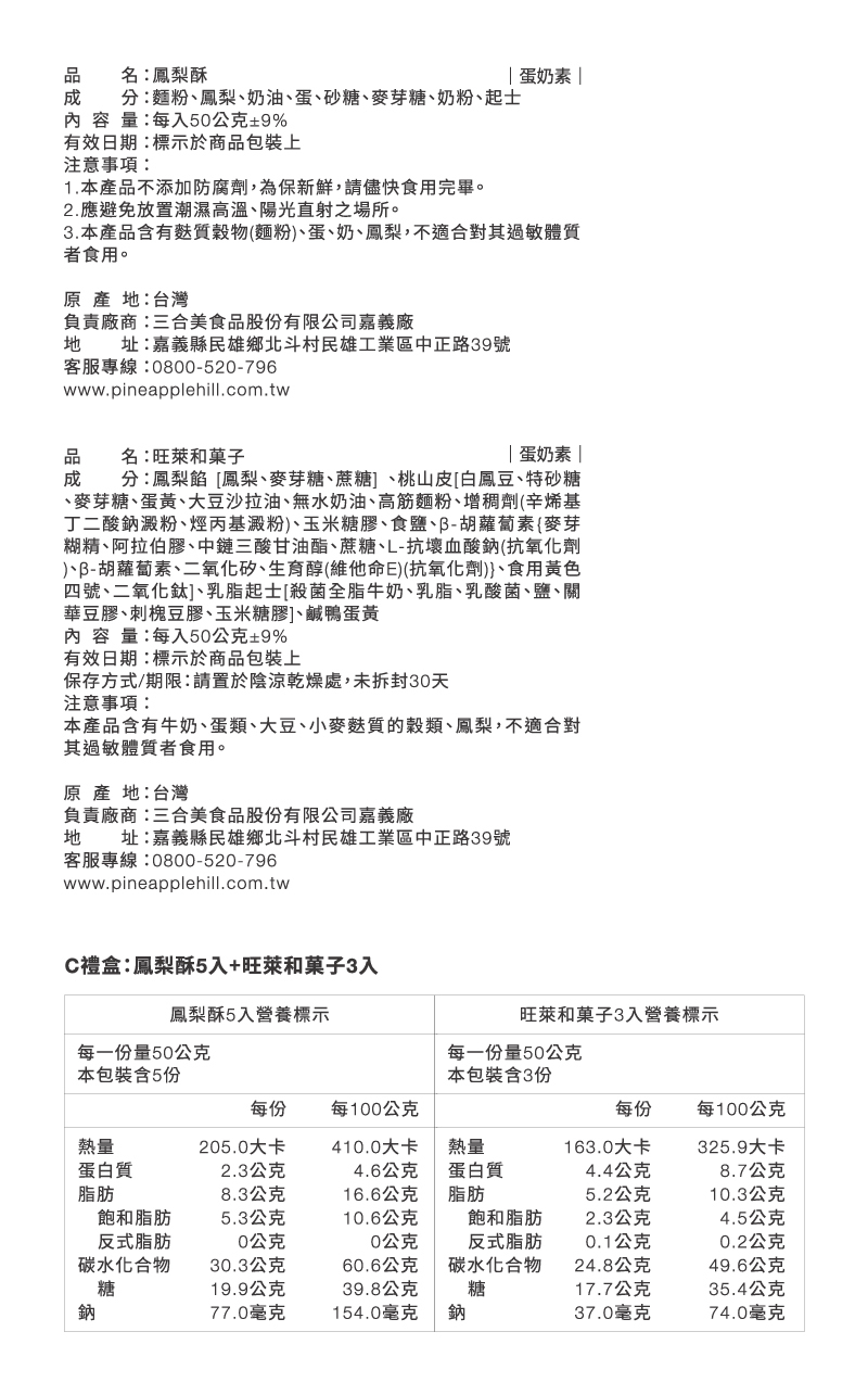 3.本產品含有麩質穀物(麵粉)、蛋、奶、鳳梨,不適合對其