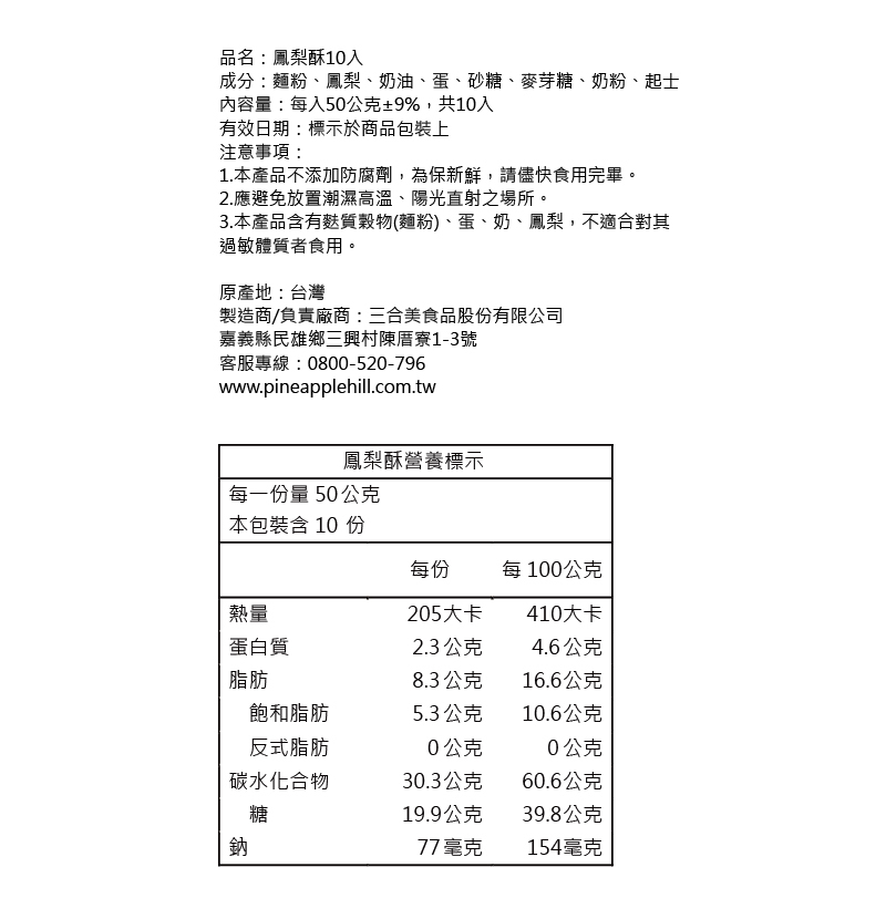 免付費訂購專線:0800-520-796▶鳳梨酥保存期限為30天,建議選擇週二至週五為指定到貨日。▶雙11活動期間訂單量龐大,出貨及配送時程可能略有延遲,感謝您的體諒與支持!