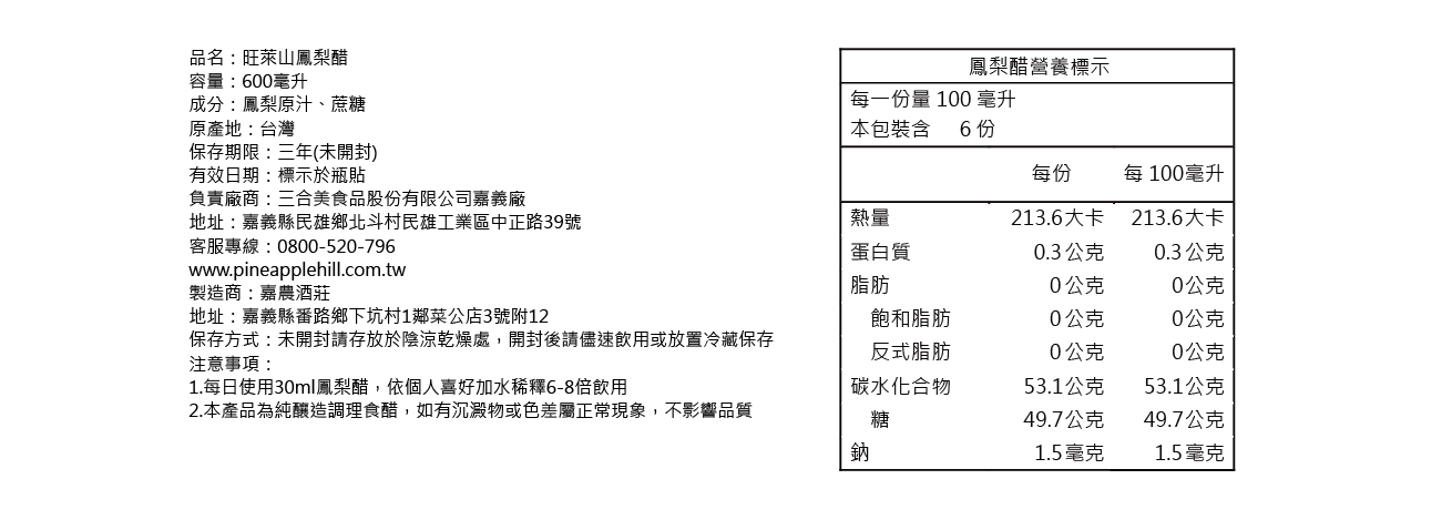 A:鳳梨醋是由 100% 的純汁釀造的,非常天然,所以全家大小都很適合飲用哦。