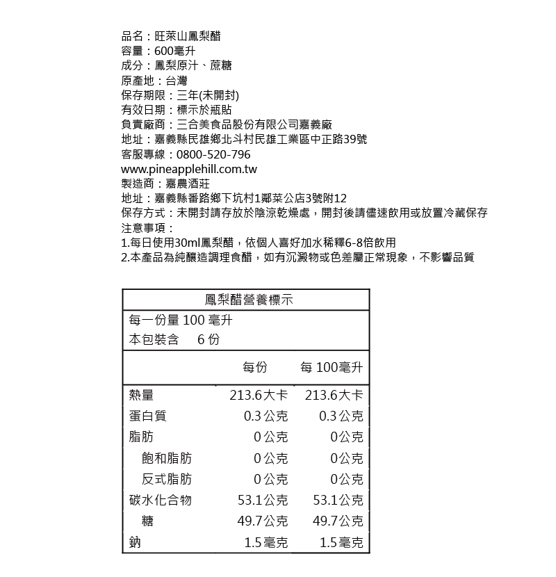 1.每日使用30ml鳳梨醋,依個人喜好加水稀釋6-8倍飲用